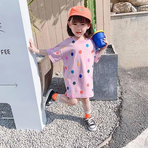 子供服 ワンピース 韓国子供服 女の子 ワンピース 膝丈 半袖 肩出しワンピース ドット柄 ベビー ワンピース ドレス キッズ 可愛い 夏服 通学着 通園着 Y アユストア 通販 Yahoo ショッピング